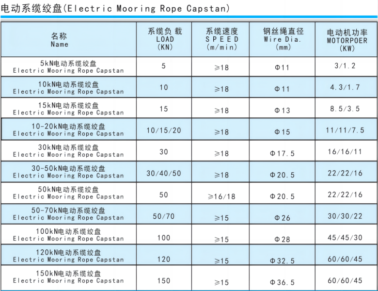 您的位置:首頁(yè) > 產(chǎn)品展示 > Anchor > Slings > 船用絞盤電動(dòng)絞盤是由電機(jī)驅(qū)動(dòng)的絞盤,電動(dòng)絞盤適用于工作拉力小于20T的作業(yè)需求,電機(jī)分為單速、雙速、三速、變頻等。較大的電動(dòng)絞盤只能選擇變頻電機(jī),變頻電機(jī)啟動(dòng)不會(huì)對(duì)電力系統(tǒng)造成沖擊。